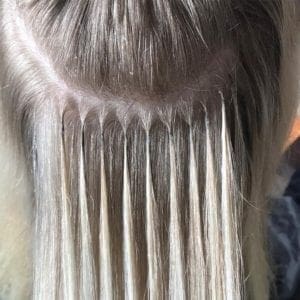 It is attached to your natural hair using a process of bonding that is a gentle application called modulating to maintain undamaged, high quality hair. The bonding material is made up of polymer chains called keratin that has a remarkably similar molecular structure to that of human hair. Keratin moves and behaves like your own hair, yet has a gentle, firm hold. It is compatible with environmental elements such as heat, water, and sunlight. Other bond systems that do not behave like keratin will not react the same to these elements and will deteriorate and fall out. This type of extensions will last for a maximum of 4 to 6 months with proper care. It can also be colored by an expert. The hair can not be reused once removed.
